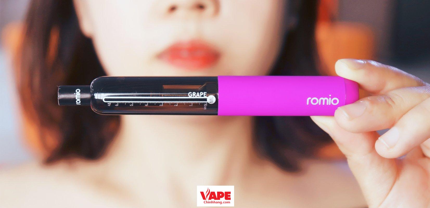 Romio S Pro là pod một lần mới nhất của Romio, phiên bản này được hãng cho ra mắt cuối năm 2021 đầu 2022. S Pro có nhiều cải tiến hơn nhiều so với bản cũ Romio Plus, phiên bản mới này được hãng chú trọng vào thiết kế, số hơi hút và mùi vị. Cụ thể Romio S Pro có thể kéo dài tới 2000 hơi hút gấp 3 lần so với bản Plus cũ, mùi vì vô cùng đa dạng đó là có tới 20 mùi vị khác nhau, hãng đã thêm rất nhiều vị mới như Pear Ice, Grape Ice, Passionfruit Ice, Blue – Nước Tăng Lực, Organe Ice…, để người dùng có nhiều sự lựa chọn và trải nghiệm hơn. Ngoài ra Romio đã chú trong rất nhiều về vấn đề thiết kế cho bản mới 2022 này, về hình dáng được giữ nguyên nhưng sự khác biết ở đây là phần trên của thiết bị được thiết kế dạng thước đo dung tích với các mức dung tích khác nhau từ 1,2,3,4,5,6,6.5ml giúp bạn dễ dàng quan sát mức độ sử dụng của mình. Vidu bạn có thể tính số hơi hút của bạn so với sự thay đổi ở vạch thước đo dung tích trên Romio S Pro.